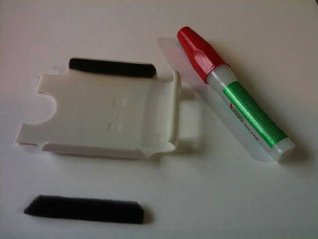 Una vez que el caso está en forma a tu gusto y para que el iphone pueda moverse fácilmente dentro y fuera, vamos a añadir algún relleno para hacerla encajar y alojarte en la mejor. Porque el caso va generalmente sobre una cubierta de suave silicona, hay una cantidad decente de habitación meneo cuando el iphone está en que con la segunda tapa. Eliminamos este sitio adicional mediante la adición de algunos de la espuma ligera de material en el interior de la caja. Dos tiras en los lados terminaron siendo perfecto para crear un buen ajuste. Sólo aplicar algún pegamento en las lengüetas laterales y presione la espuma. Una vez que el pegamento esté seco (debe ser bastante maldito rápido) usted puede recortar cualquier exceso de material.