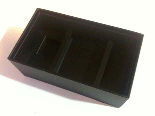 A continuación debemos crear la estructura de la base de la estación de acoplamiento. Para esto vamos a utilizar la caja del iPhone vino originalmente. La caja se hace de cartón que es bastante robusto y también sucede que se ven bastante bien. También contiene espuma fina de cartón y rígida para crear "compartimentos separados" dentro de la parte inferior de la caja. El compartimento central proporciona un lugar agradable para el caso de sentarse.