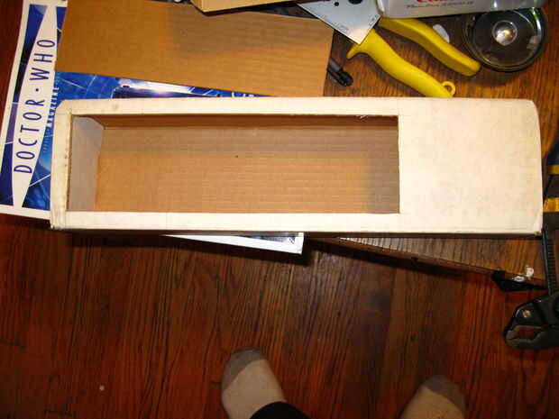 Realmente no sé exactamente lo que los originales fueron hechos, así que mi principal objetivo era idear algo LOOKED más o menos como la cosa real. Sin que cueste mucho dinero. Así que para la parte media, elegí una caja de coleccionista de cartas pies de largo, un simple asunto de cartón que se vende por menos de un dólar (o menos, si eres como yo y puedes ejecutar una tienda de cómics).