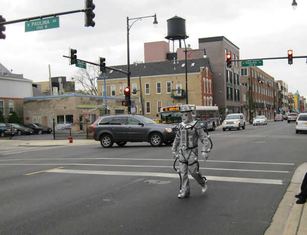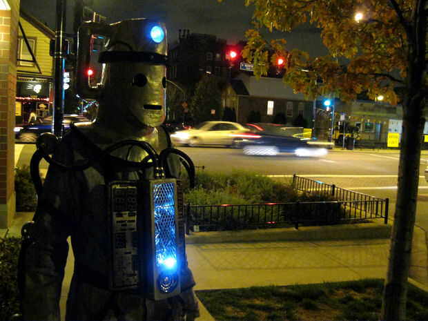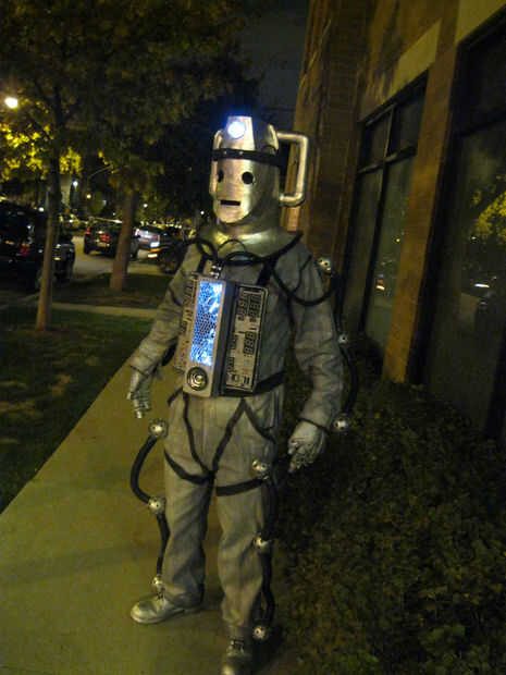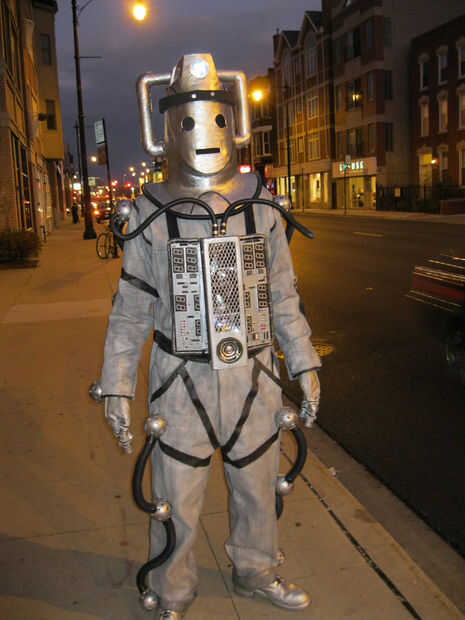 Todos juntos, es un desafío para entrar en el traje, pero es bastante fácil de usar una vez que tengas en el. No hay ninguna visión periférica, por lo que hay que tener cuidado, pero caminar de manera lenta y deliberada no destruir la ilusión de ser un Cyberman! Estoy muy contento con el aspecto general; sin duda recuerda la escena de "Lunar", pero este traje es también su propia creación única. Gracias a Ian y Rob por su ayuda! Y a mi mamá, que totalmente me compró esos monos a pesar de que soy un adulto de 37 años de edad.