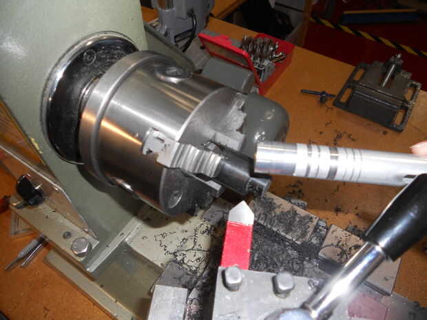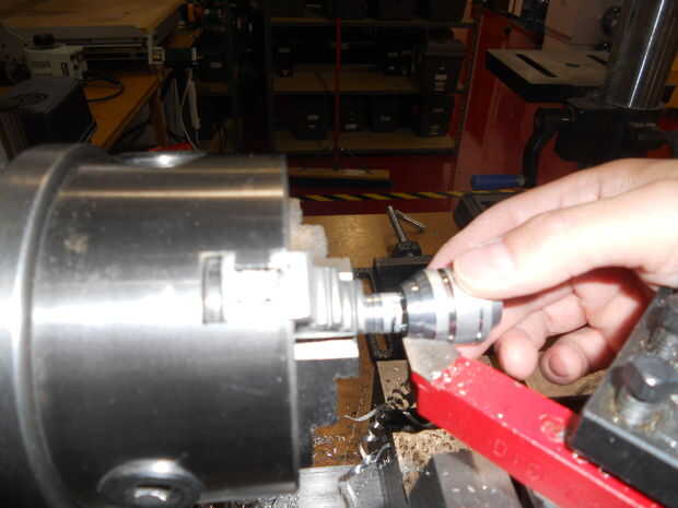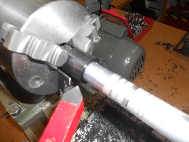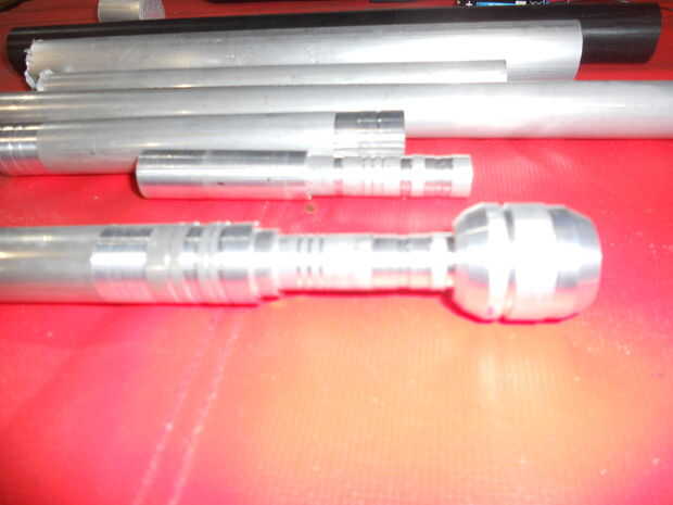 Hacer lo que sea necesario para que las piezas encajan. En mi caso, tuve que reducir el diámetro exterior (OD) de la. 625" tubo se deslice libremente en el interior el. 75" OD del tubo. Entonces tuve que reducir el OD de la. 5" un cuarto de pulgada de la punta del tubo por lo que encajaría perfectamente en el. 625" tubo. Un agujero en una sección de 1" redondo stock así que el otro extremo de la. 5" tubo encaje perfectamente en eso. Todo lo anterior me dio una forma cruda destornillador sonic.
