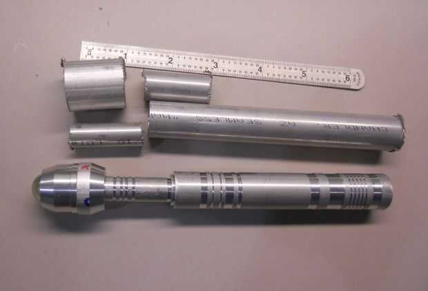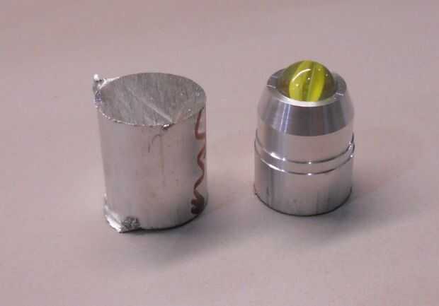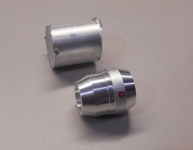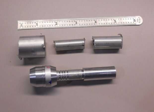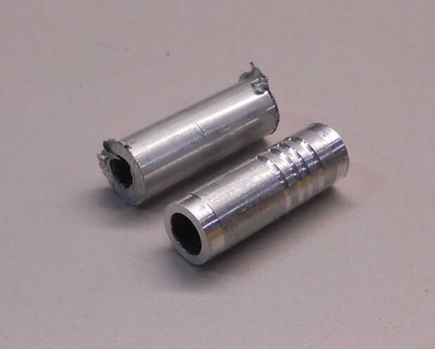 El cuello es al darse la vuelta. 1/4" del extremo se da vuelta para reducir el diámetro, por lo que encajaría perfectamente en la funda interior. Luego se hacen surcos por razones decorativas.