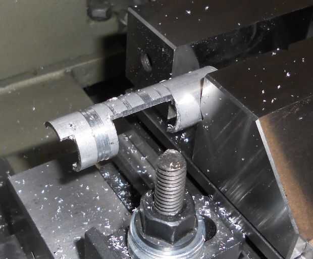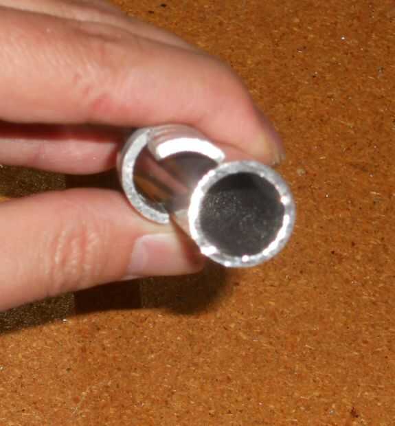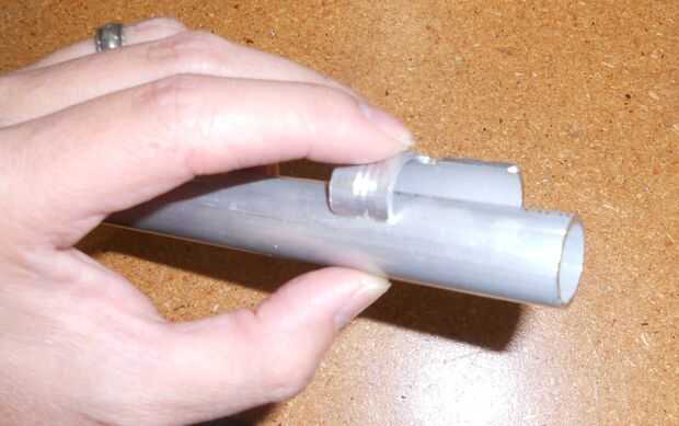 Primero se corta una sección de. 75" tubo cerca 2" de largo. A continuación cortar una sección en "T" que es aproximadamente 2/3 de la circunferencia del tubo (en uno mío que se parece más a una "L").
