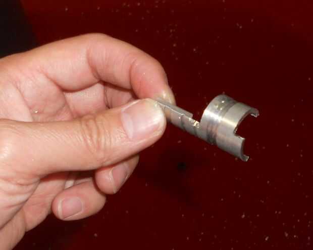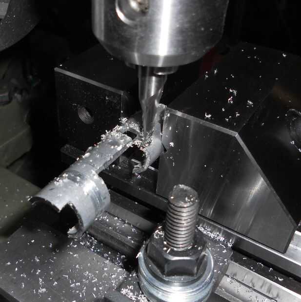 Usando molino de usted, haga una ranura en la funda interior a lo largo de la línea del marcador aproximadamente 1/32" de profundidad. En los extremos de la ranura, utilice una broca para hacer un hoyuelo 1/16 pulgadas de profundidad. El cojinete se paseo por esta ranura y caerá en las hendiduras de la manga en lugar de la cerradura.