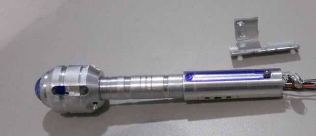 Perfore agujeros en las extremidades de la T. Conecte esta sección en T de aluminio en el cuerpo principal del destornillador sónico sobre centrado a lo largo de la longitud de la ranura. Temporalmente fije con tornillos. Mirar dentro del cuerpo principal y ver cuánto los tornillos sobresalgan dentro. Tome nota de él. Usted tendrá que cortar o moler los tornillos para que quede a ras con la parte interior pared del cuerpo principal.