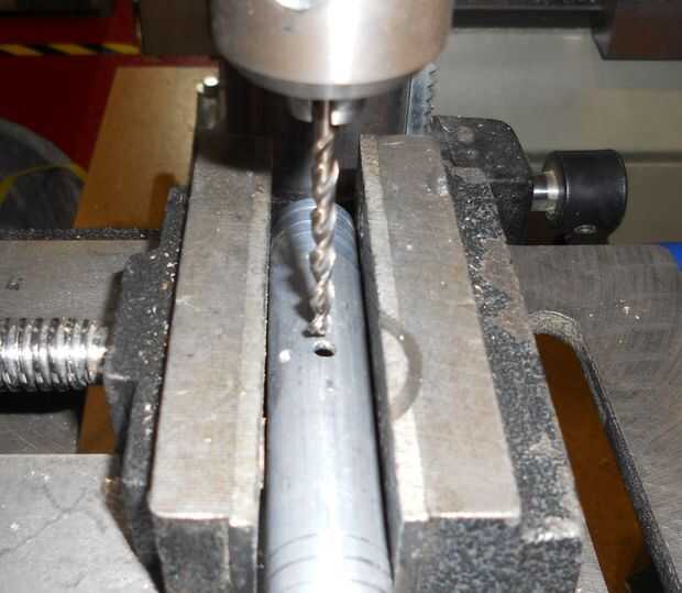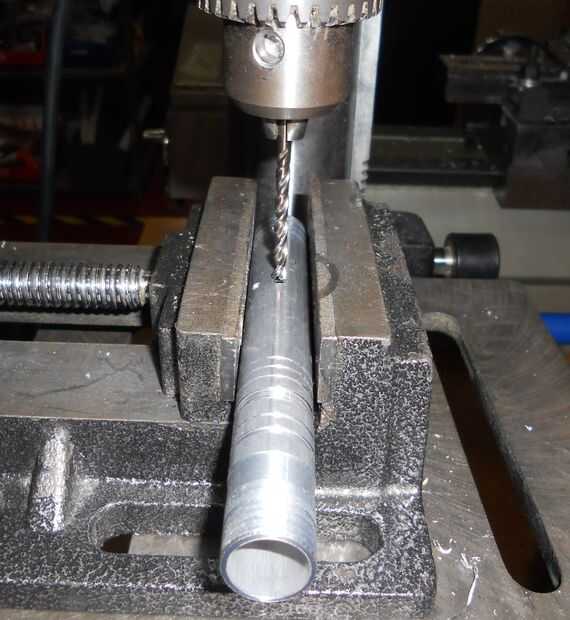 Medir a un buen lugar debajo de la T donde se taladra un agujero en el cuerpo principal que es el mismo diámetro que el rodamiento de bolitas. Retire la broca de T. el orificio para el cojinete de bolas.
