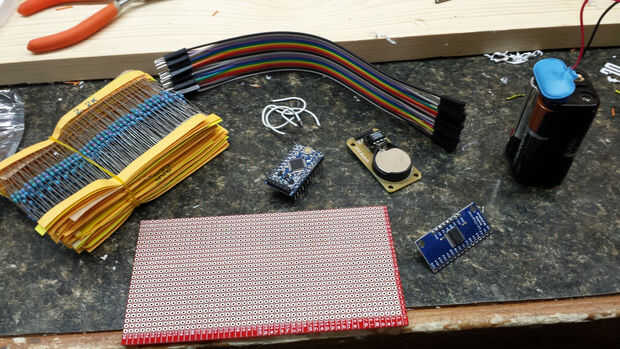 Perfboard/Protoboard - utilicé el Protoboard Snappable Sparkfun puesto que no sabía Cuánto tendría que ser; usted podría quiere algo un poco más robusto pero con agujeros de unos 25 x 40