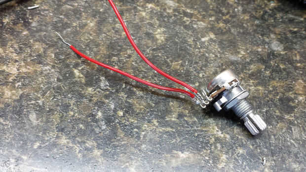 Pequeño potenciómetro (o resistencias) el potenciómetro utiliza va hasta sobre 8 kOhms, punto en el que los LEDs son bastante oscura; Si usted prefiere un brillo fijo, puede utilizar una resistencia.