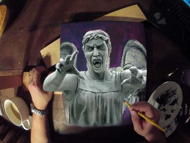 This is a full-sized weeping angel I made for last year's Halloween party. Dado que el cociente de geek es bastante alto entre nuestros amigos, sabíamos la gente conseguiría un tiro de él (y nerviosos todos los niños del barrio al mismo tiempo! Mwaha