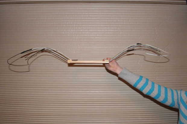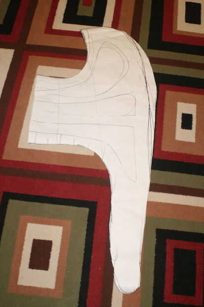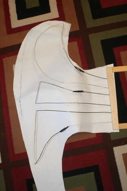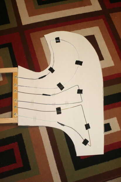 Una vez que se corte mi patrón de ala hice y había trazado sobre las perchas. Quería comprobar que los soportes de suspensión sería dentro del patrón. Si no fuesen, simplemente volver a doblarlas hasta que lo hacen.