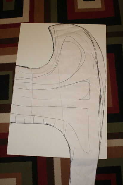 A continuación coloque el patrón sobre un pedazo grande de Junta de espuma. Necesitarás cuatro de ellos para completar las alas. Sólo cortar uno a la vez como usted lo necesita.