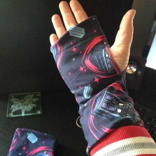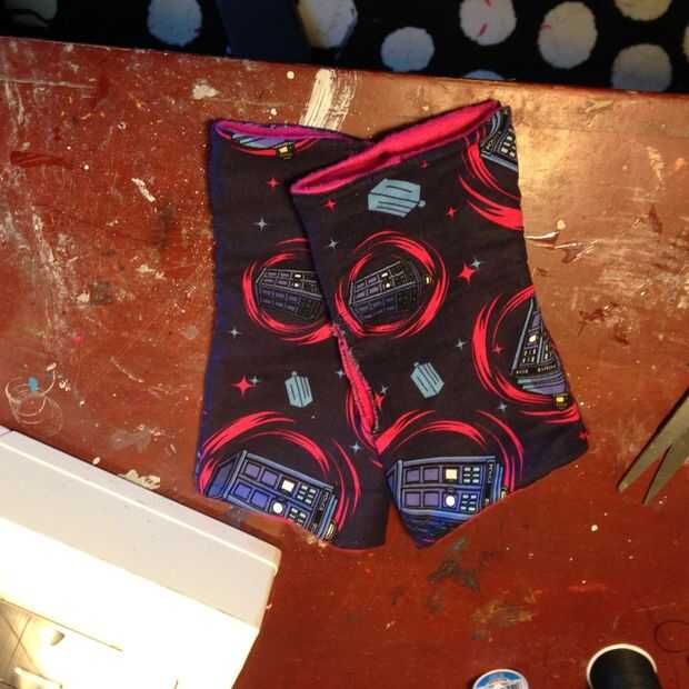 Una vez terminado el agujero de abajo y el pulgar, dobla a la mitad su calentador, derecho lados juntos, pin y coser. Salir y listo.