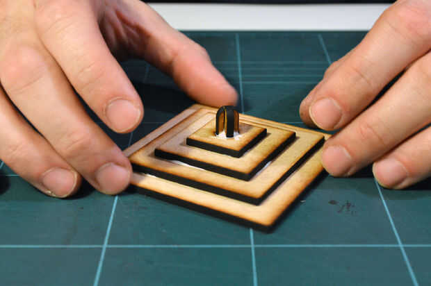 Ahora, encontrar los dos cuadrados más grandes y pegarlos juntos concéntrico como se muestra. Después de algunos minutos la luz sostenga en su lugar y usted puede unir todo el conjunto.