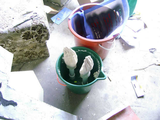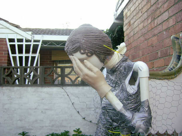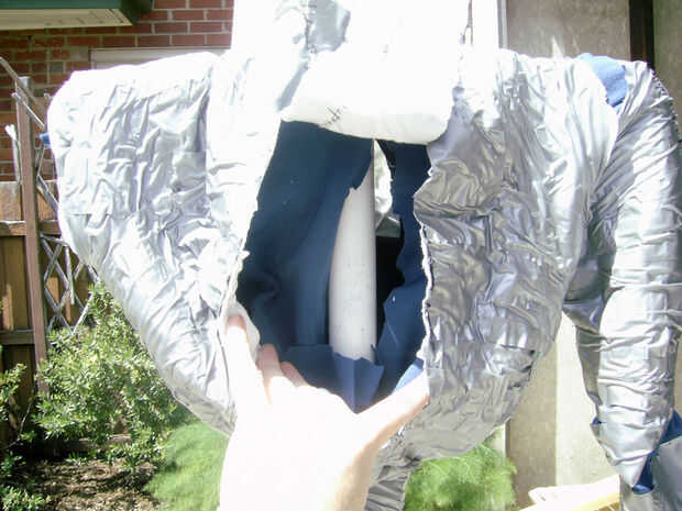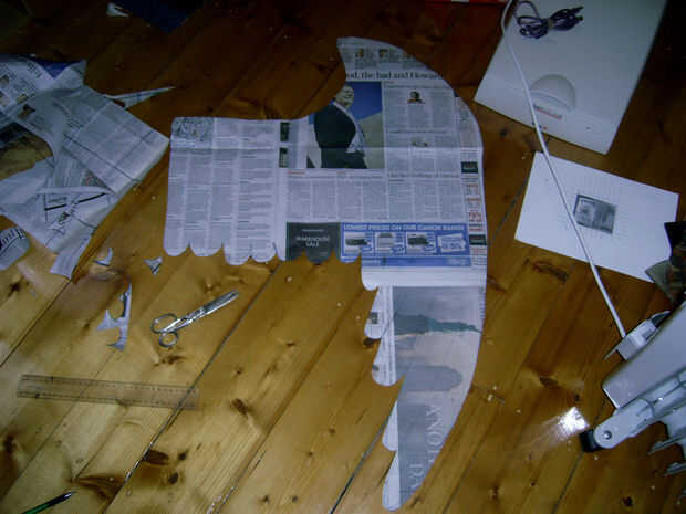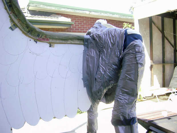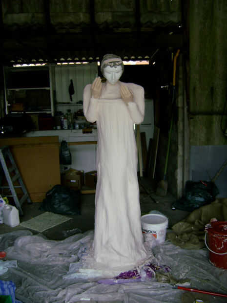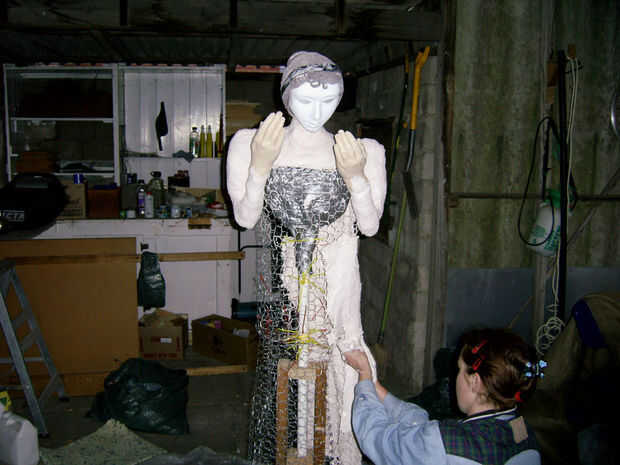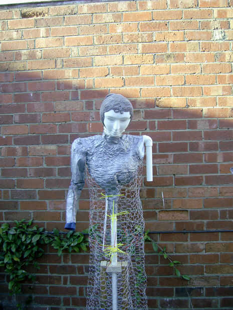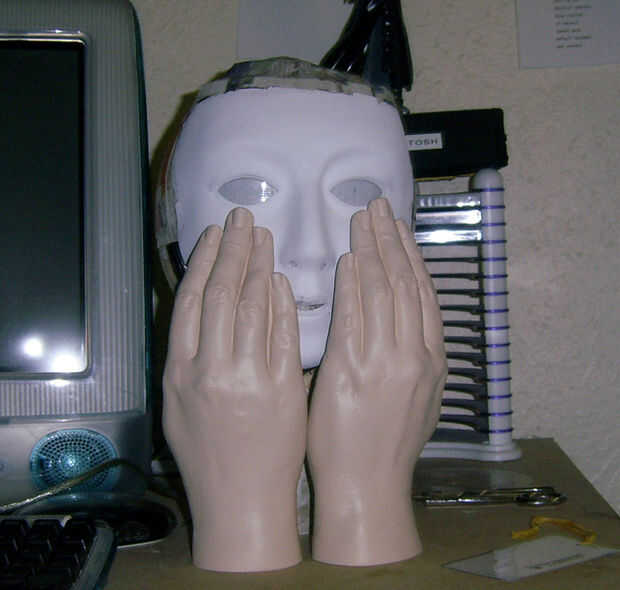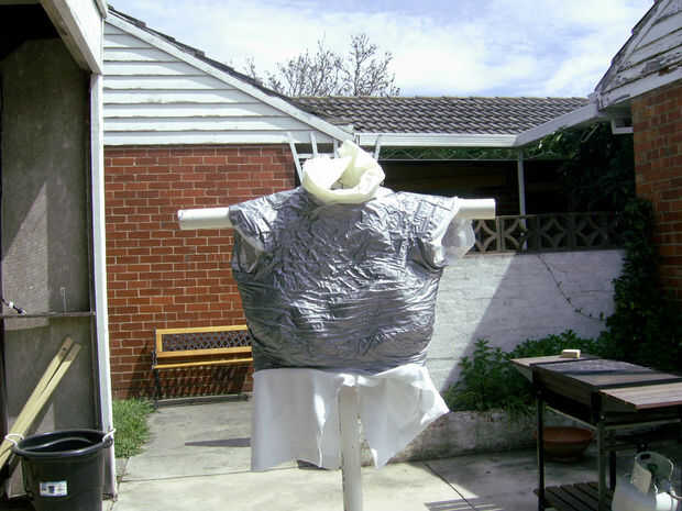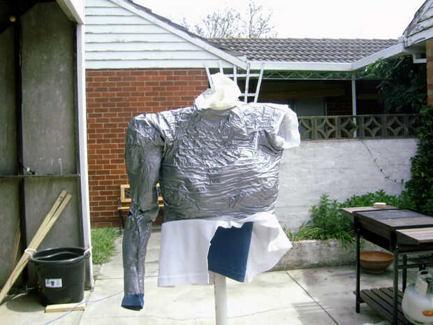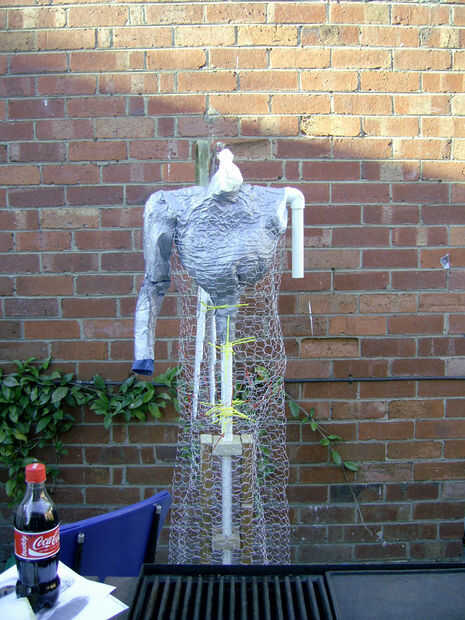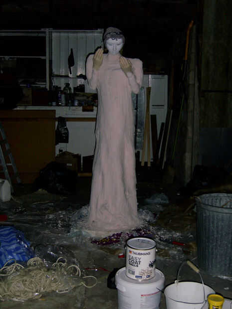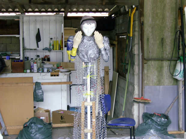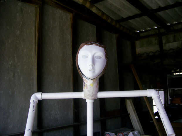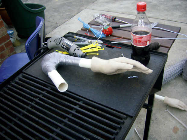 La idea original era hacer desechables (por lo menos articular los brazos) pero lamentablemente prevalecieron otros eventos, y terminé yendo con un accesorio de barro. Todavía lo suficientemente bueno como para asustar a la bejeezus de alguien que caminaba en él :D