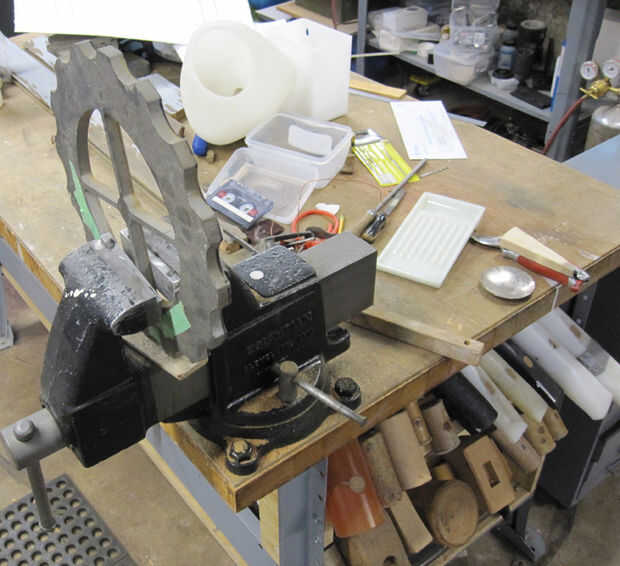 Aquí se puede ver una de las placas en el estudio.  Estos son todos terminados a mano.