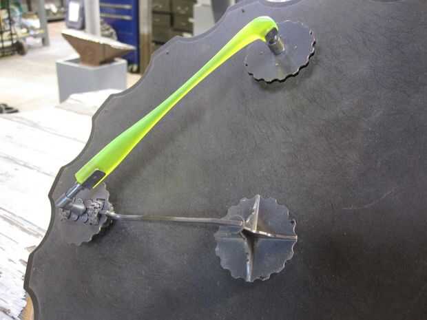 después de ver la escultura que hace pivotar enfermos de energía cinética en Ironman 2, pensé que sería un reloj decente.Herramientas: taladro, Sierra, llave, tijeras y una lima redonda, clavos. Con algunos otros como usted puede decir.Materiales: Mo