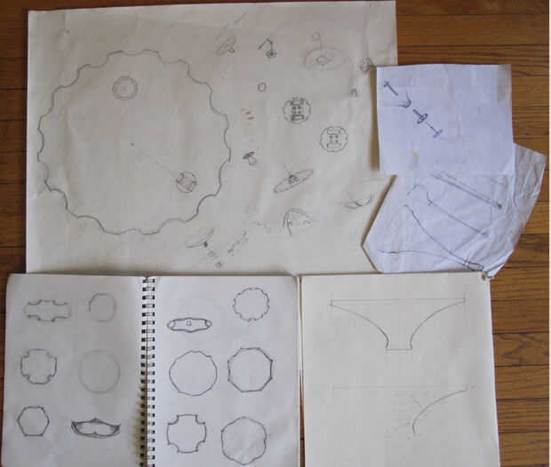 Antes de empezar a hacer un objeto, hacer un poco de dibujo.  Grandes dibujos, bocetos sobre las espaldas de agendas de reunión, dibujos técnicos, estudios, etc., todos van a él.  Algunas piezas toman varios años para vídeocomunicación y producción física.