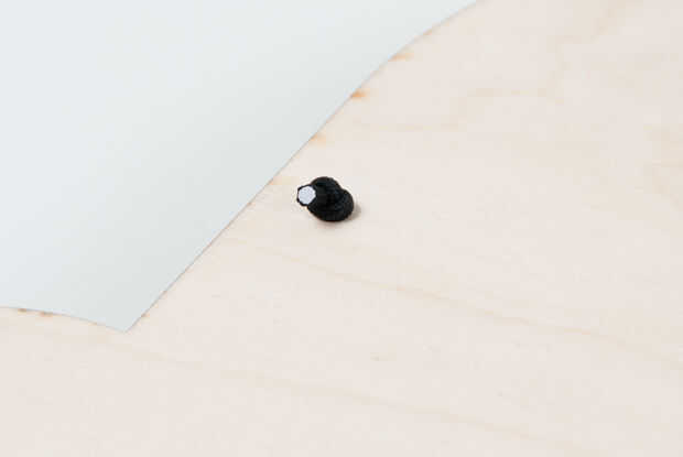Corte el cable de choque en las longitudes de 8.5". Puede chamuscar los extremos con un mechero para evitar que se deshilache. Un simple nudo en un extremo de cada pieza. Enrosque el cable de descarga para arriba a través de un agujero y luego estirarlo a través y hacia abajo a través del orificio en el lado opuesto. Haga otro nudo simple en el otro extremo para asegurar el cable de descarga a la Junta. Repetir para la segunda pieza.