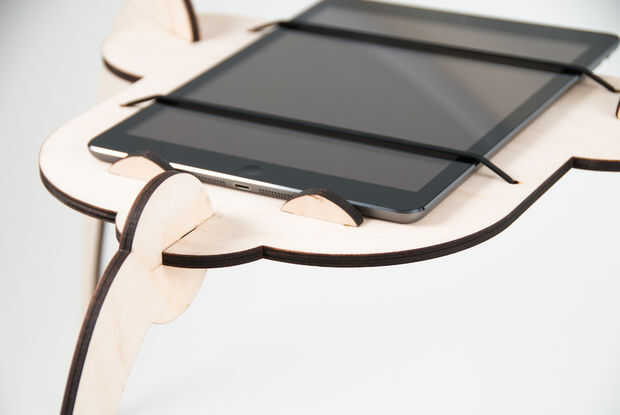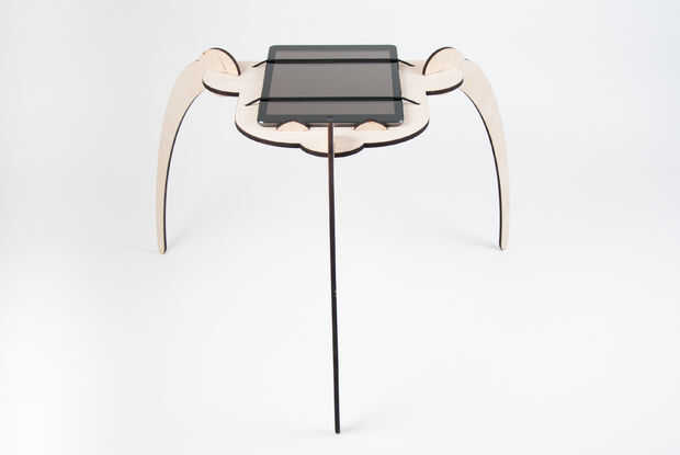 Las tres patas son idénticas, por lo que no importa por dónde comenzar. Inserte cada pierna en la plataforma. Asegúrese de que las ranuras estén fijamente asentadas uno contra el otro para encajar un seguro - usted debe tener aproximadamente 2" de superposición. Las ranuras deben encajar en algún lugar entre bastante ajustado y muy apretado. Si el ajuste es muy apretado, hacer algunos lijado adicional a lo largo de las caras de la plataforma y las piernas donde las ranuras de enganche. No trate de arena dentro de las ranuras - va a ser un ejercicio de frustración.