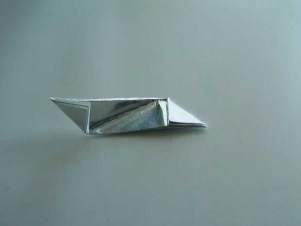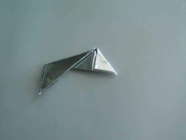 Ahora quieres pliegue una línea diagonal en la unidad como se muestra. La mejor manera que puedo explicar esto es que quiere doblar de una esquina del triángulo con el otro.