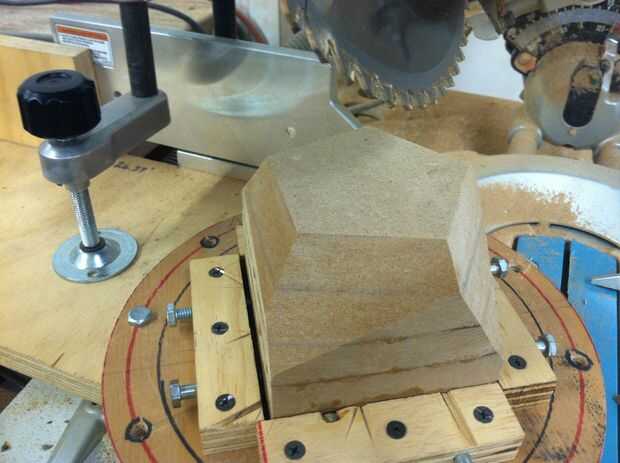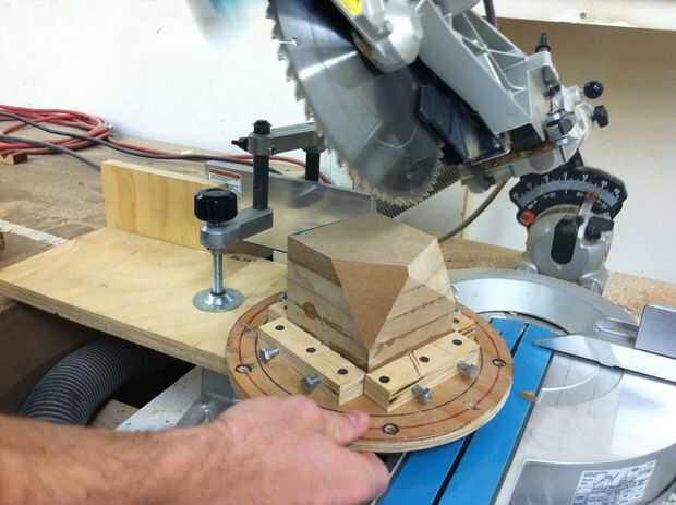 Asegúrese que su placa de plantilla se fija firmemente a la mesa de la sierra, su bloque esté fijada con abrazadera firmemente dentro de la plantilla, y su pin en lugar para parar el jig de rotación.