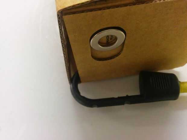Se trata de los materiales que utilizará para el caso DODO.-Recorte de cartón caso DODO-Tira de NFC DODO-Lente de acrílico 2-2 cinta de doble cara-1 imán con anillo magnético-4 tiras de velcro: 1 DODO caso paso 11. Coloque el NFC las tiras en el área