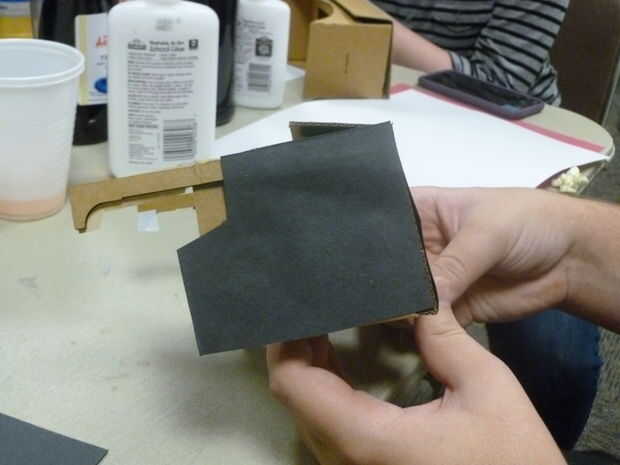 Pegar la cartulina sobre el visor, asegurándose de no pegar la aleta principal cerrado.