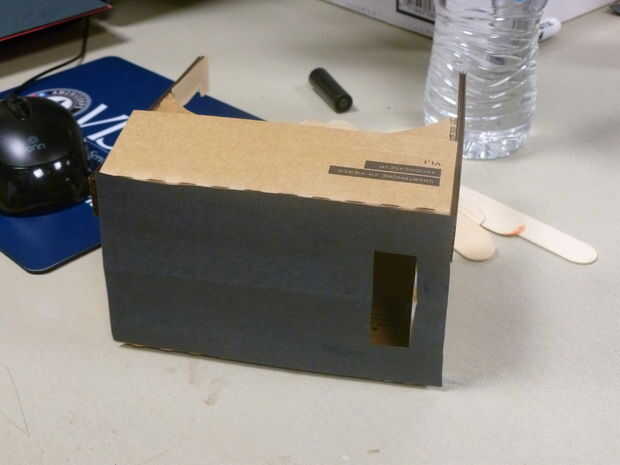 en este instructable, va mostrando cómo agregar tiras de Velcro para hacer una diadema tipo de accesorios que no necesita aferrarse a él.Paso 1: Cortar las aberturas He pintado mi dodocase vr kit con pintura de aerosol negra para darle una sensación