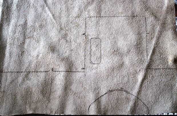 A trazar el contorno del espectador, asegurándose de incluir la ranura de la cámara y dejar suficiente material en ambos lados.