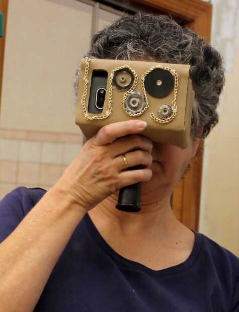 Para esa mirada de retroceso a antiguos estereoscopios y vidrios de ópera, considere agregar un mango. Es cómodo y si vas a parecer un friki con una caja en tu cara, así podría ir grande.