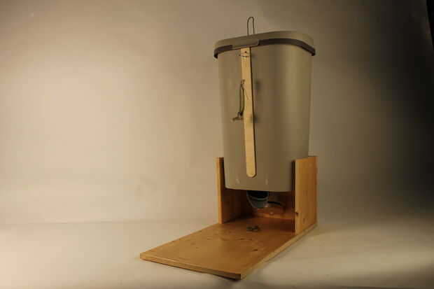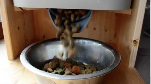 El perro tiene que tirar del cable y solamente una porción de alimento vendrá de la caja. Es posible cambiar el tamaño de la porción. Una menor cantidad de alimento durante el invierno y una mayor cantidad durante el verano. Si el perro se enferma que la parte también se puede cambiar. El sistema también se puede 'bloquear' para que el perro no será capaz de alimentarse sin la orden.