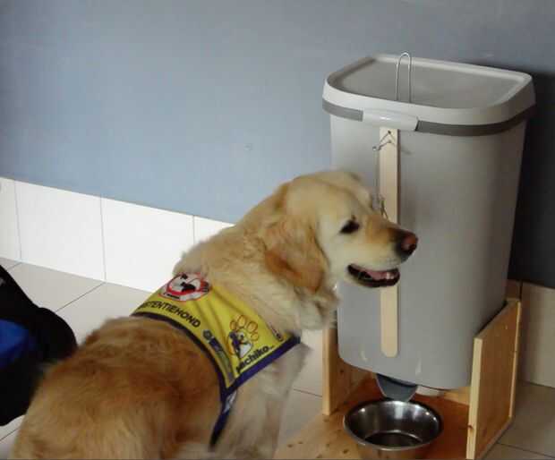 Tener una discapacidad física hace que las cosas cada día un verdadero desafío. Hemos creado un producto que hace más fácil para el dueño a su perro de asistencia. El propietario no era capaz de alimentar a su perro por él mismo.