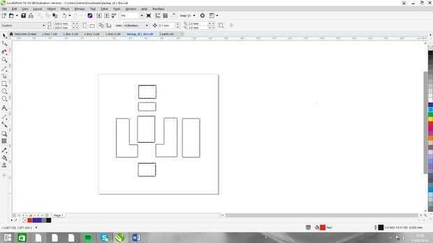 He creado un cuadro de 490 x 270 mm con los cantos de 3mm. Para nuestro diseño que hemos decidido hacer en forma de L para usar corel draw Rediseñamos la caja para que las diversas piezas encajadas entre sí.