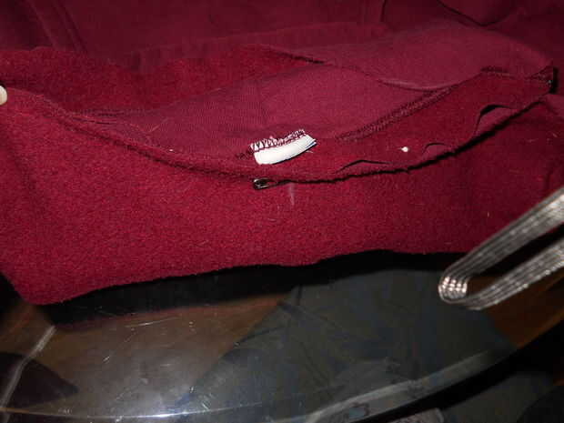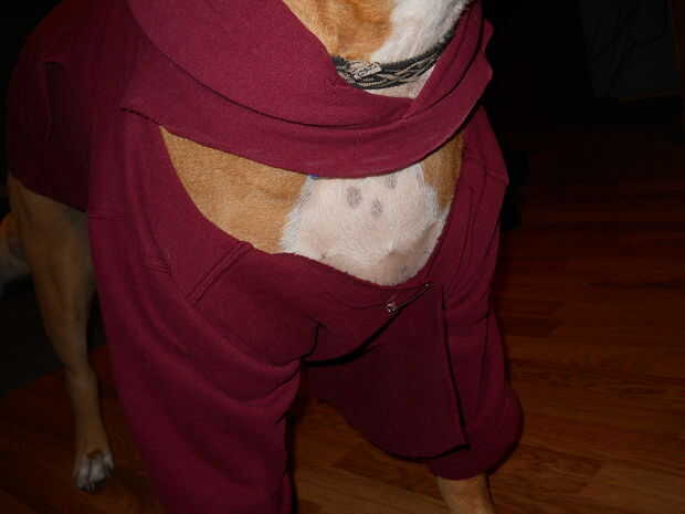 Hasta los pines juntos y coser la parte superior de la capucha en la parte posterior de la campana. Abandonar el frente (es decir, la parte por debajo de la barbilla de perros abierta en este momento)