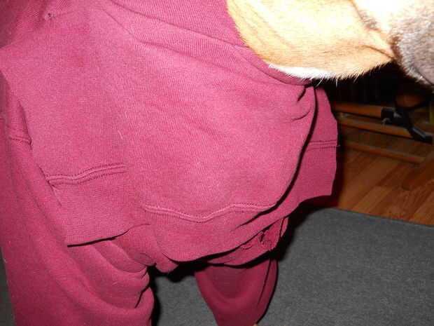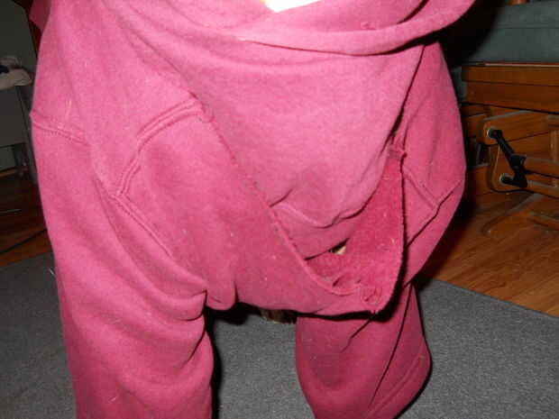 Perno de seguridad en lugar y retire la capucha de su perro. Convertir todo revés y coser todo el camino alrededor de la pieza de"relleno" (imagen 4) recortar cualquier exceso tejido. Convertir todo lado derecho hacia fuera otra vez y tratar a su perro. OTRA VEZ. Debe ser algo como la última imagen!!!!