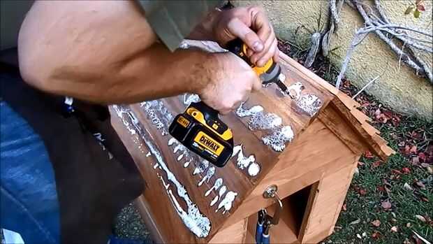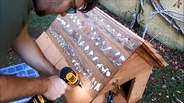 Luego las tejas pegamento y tornillos en su lugar (Asegúrese de que sus ranuras se superponen).