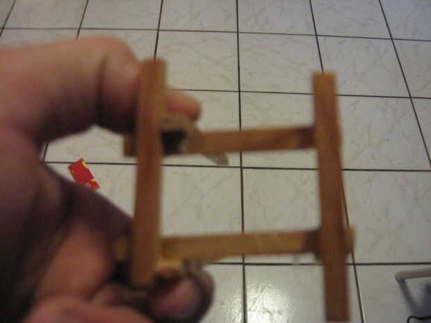 Hacer una de las cosas en la figura 2 con madera, asegúrese de que el servo quede en él. Luego cortar dos piezas largas de madera y pegar en el lado. Por último, pegar dos piezas más que pegado a las piezas. Utilice uno como referencia.