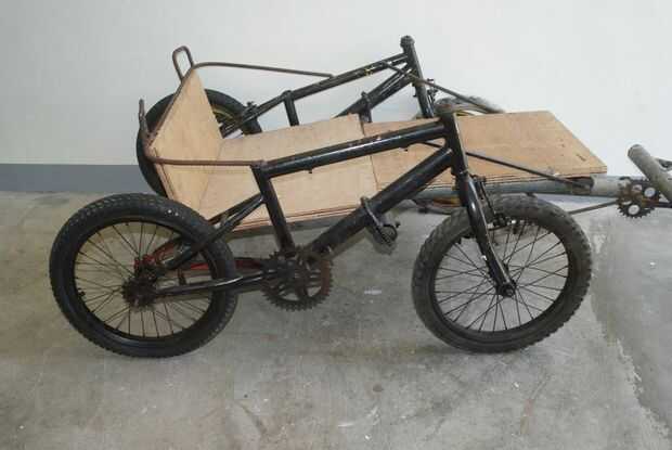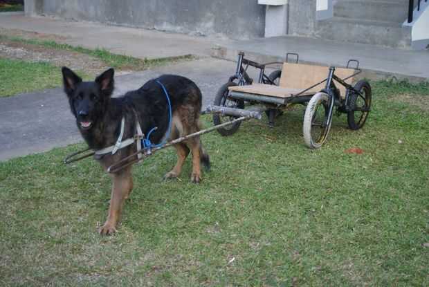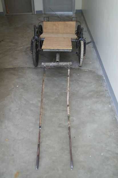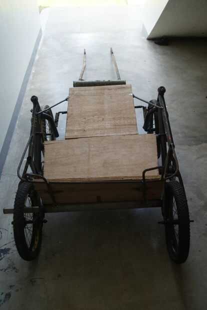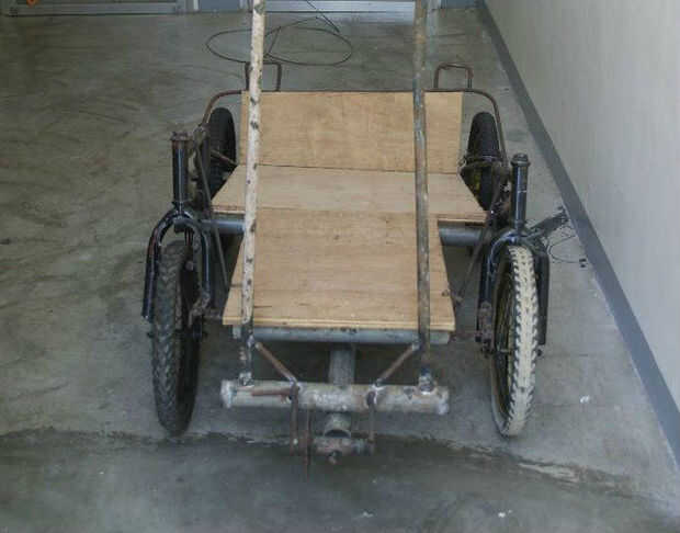 Yo quería hacer un carro porque mi mamá había dicho que tirar algo sería el donante nuestra espalda buen perro y los músculos traseros. Entonces, VI algunas motos, y la idea de este carro me llamó la atención. Encontré algunas piezas chatarras y consiguió un amigo a soldarlas juntas para mí (no tengo un soldador) y listo! un carro de lujo listo para funcionar.