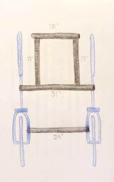 Luego, tome dos 18'' pedazos de varilla corrugada y dóblelos agudamente 90 grados en 3'' y 6'', midiendo desde un extremo. Usted conseguirá algo que parece casi una J (ver fotos 7 y 8). Estas piezas en las esquinas de la curva de barras poner en antes de la soldadura. La parte larga de la s de "J" se unen a la tubería de acero posterior del marco. Esto da sustento a la curva que forma la parte posterior de la carreta y también hace algunas manijas prácticas.
