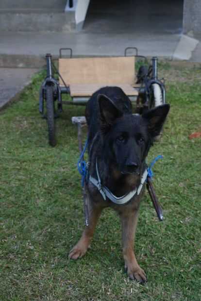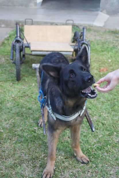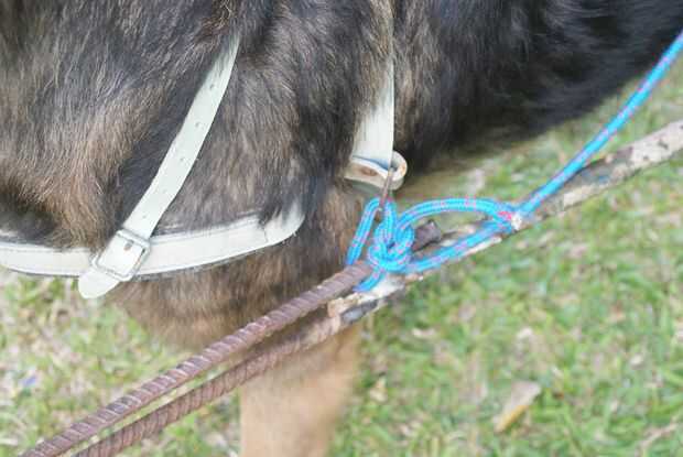 A continuación, conectarlo a la parte delantera del vagón. Necesita un arnés del perro adecuado para esto. Los dos dientes se unen al arnés a través de los agujeros perforados en el paso 4.
