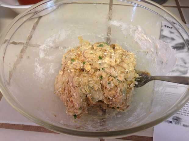 Una vez todos los ingredientes en un tazón grande, mezcle todos los ingredientes hasta que se parece a como se muestra arriba. Deje la mezcla reposar por 5 minutos.
