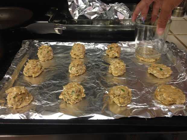 Una vez que todo el perrito mezcla en forma de bola, aplanar la bola con la palma de su mano. Aplanarla hasta que se asemeja a una galleta.