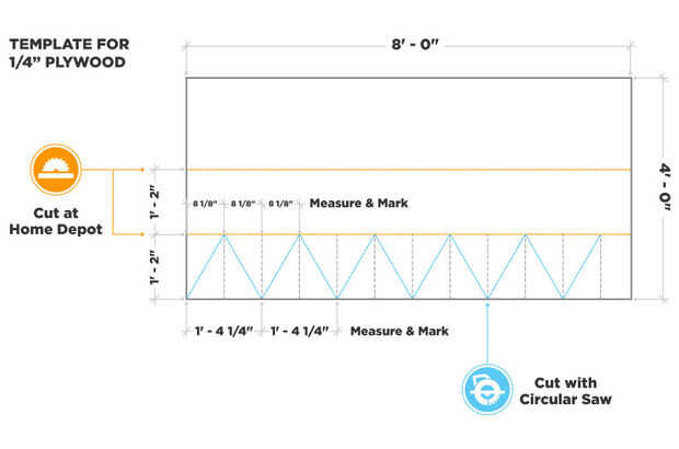 Los triángulos deben ser aproximadamente la misma altura de tu perro. Fletcher es aproximadamente de 14" de altura sentado tenía la gente agradable en el hogar que Depot corta dos 14" ancho tiras de madera contrachapada para mí.