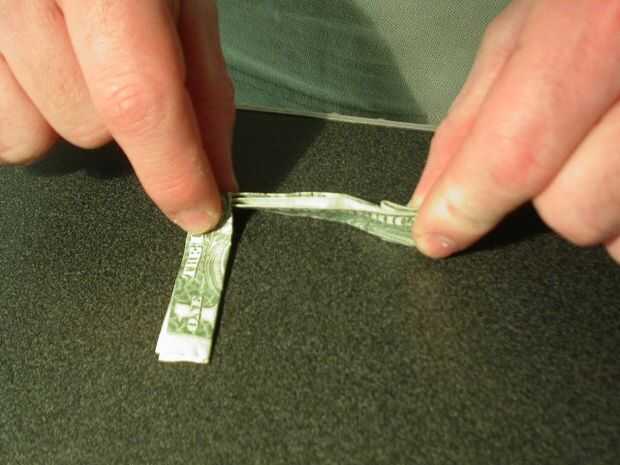 básicamente una de las cosas más cool que puede hacer con un dólar.Paso 1: Base de bomba de agua El objetivo aquí es hacer base en un extremo de la cuenta de una bomba de agua. Para hacerlo:-doblar la factura en medio estilo perrito caliente, a conti