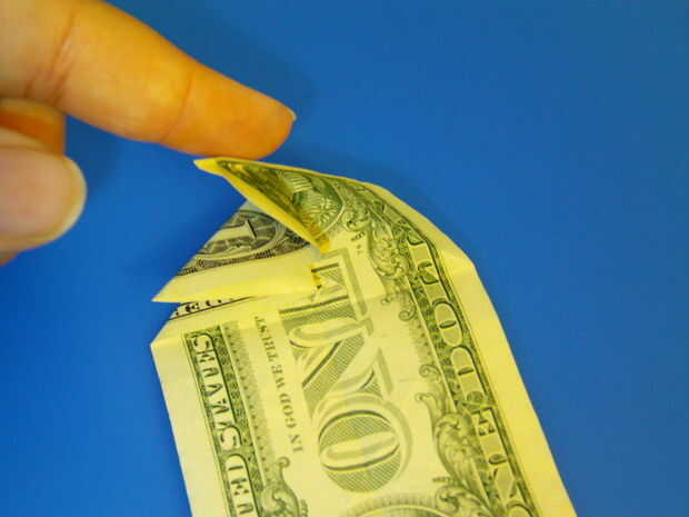 -doblar la esquina superior derecha para el borde de la cuenta y, a continuación desplegar (Foto 2)