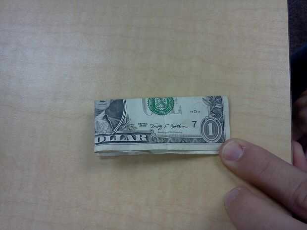básicamente una de las cosas más cool que puede hacer con un dólar.Paso 1: Base de bomba de agua El objetivo aquí es hacer base en un extremo de la cuenta de una bomba de agua. Para hacerlo:-doblar la factura en medio estilo perrito caliente, a conti