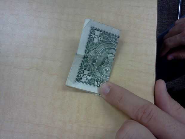 básicamente una de las cosas más cool que puede hacer con un dólar.Paso 1: Base de bomba de agua El objetivo aquí es hacer base en un extremo de la cuenta de una bomba de agua. Para hacerlo:-doblar la factura en medio estilo perrito caliente, a conti