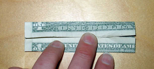 básicamente una de las cosas más cool que puede hacer con un dólar.Paso 1: Base de bomba de agua El objetivo aquí es hacer base en un extremo de la cuenta de una bomba de agua. Para hacerlo:-doblar la factura en medio estilo perrito caliente, a conti