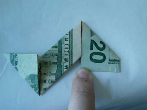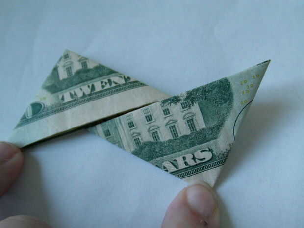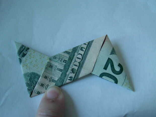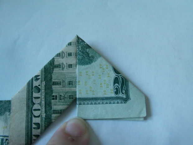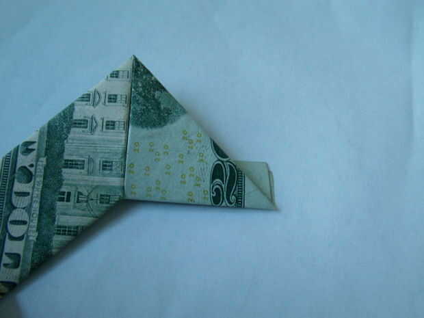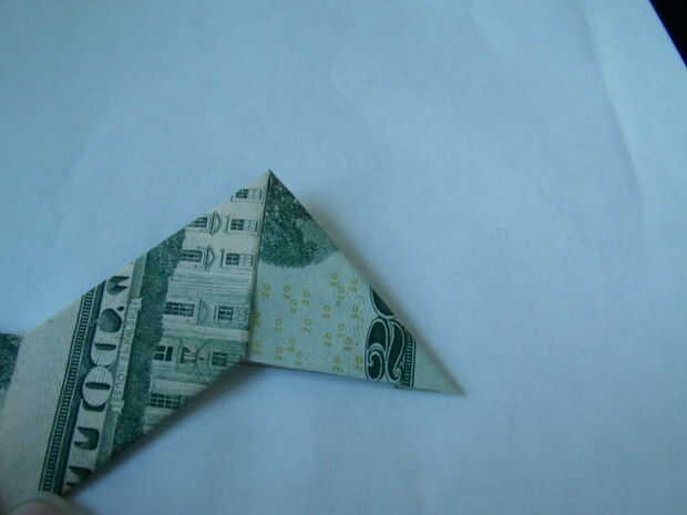 Ahora termine con bill #1. Cuando le da la vuelta el proyecto de ley sobre usted verá dos triángulos grandes.