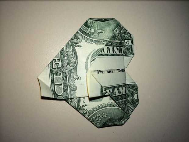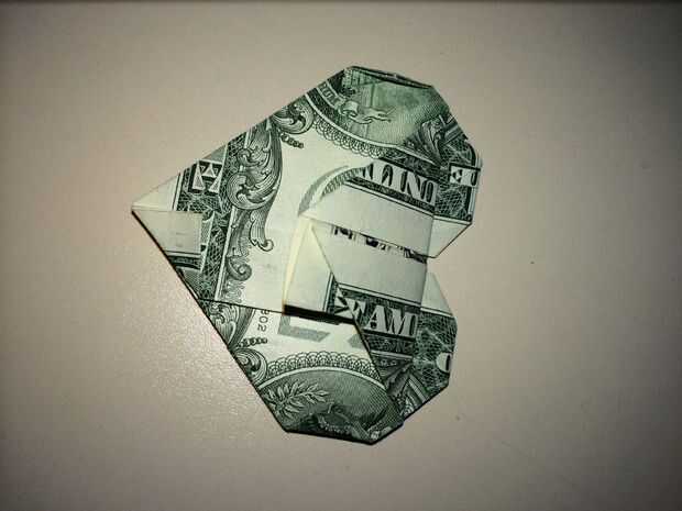 Dólar Origami corazón con cuarto (10 / 11 paso)